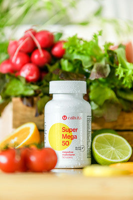 Super Mega 50 je multivitaminski izdelek z visokim odmerkom in zakasnjenim delovanjem z minerali, elementi v sledovih, antioksidanti in dodatnimi bioflavonoidi, izdelan posebej za osebe z intenzivnim življenjskim slogom. Tiamin prispeva k delovanju živčnega sistema ter k normalnemu psihološkemu delovanju. Vitamina B6 in B12 ter cink pa imajo vlogo pri delovanju imunskega sistema. Vitamin C medtem povečuje absorbcijo železa.